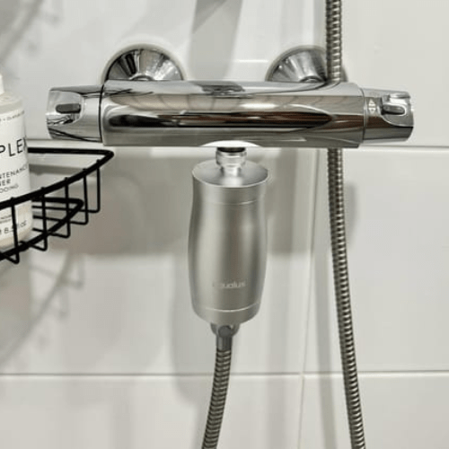 Aqualux nya innovation baseras på högkvalitativt KDF-55-material, som finns i vårt filter hela 4 gånger mer än i något annat duschfilter.